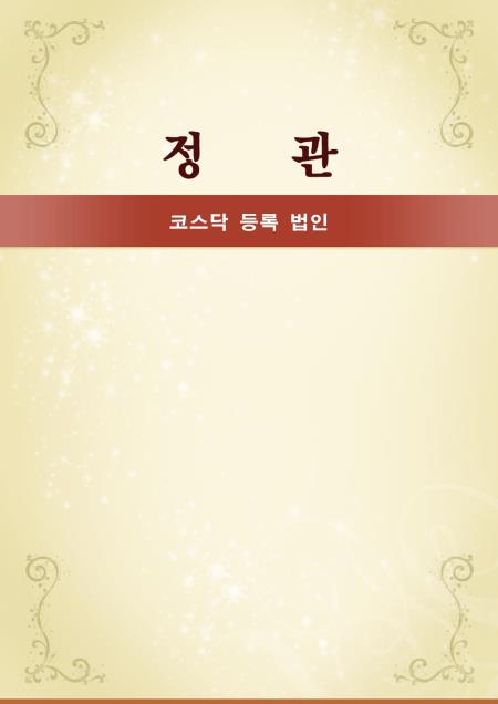 코스닥 등록 법인의 조직활동을 정하는 근본규칙을 기재한 표준 코스닥 등록 법인 정관입니다. 총칙, 주식, 사채, 주주총회, 이사, 이사회, 대표이사 등의 항목으로 구성되어있습니다.