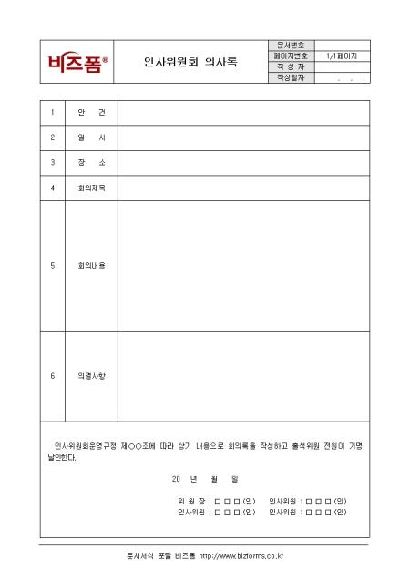 사원의 인사관리를 합리적이고, 공정하게 처리하기 위해 사용되는 서식이다. 구성요소는 안건 일시 회의내용등으로 구성되어 있으며 사원의 승진 및 상벌에 관한 내용을 회의를 통해 기록하는 서식이다.