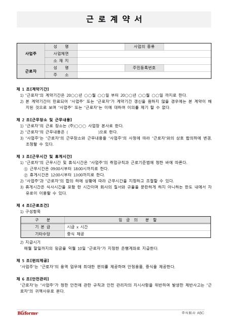 전문가가 직접 작성한 용역 근로자의 표준 근로계약서입니다. 퇴직연금제도 도입에 따른 근무환경과 형태에 따라 필수항목과 세부항목을 표준화하여 적용하였습니다. 퇴직연금제도 도입을 준비하고 있는 사업장은 참고하여 본인의 사업장에 맞게 활용하여 사용할 수 있습니다.