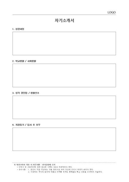 표준서식 ver 2.0은 대한민국 문서·서식 대표브랜드 비즈폼이 100여건의 중소기업 실무서식을 연구·분석하여 제작한 실무에 가장 적합한 표준 서식입니다. 샘플내용, 표준규정, 작성방법 등 문서 하나에 모든 내용이 포함되어 문서작성부터 행정처리까지 가능합니다. * 표준 자기소개서(인사규정, 작성방법 포함)는 4가지 항목으로 구성되어 있으며 중소기업에서 신입·경력사원 채용 시 가장 표준적으로 사용할 수 있으며, 회사의 규모와 성격에 맞게 수정하여 활용하실 수 있습니다. * 세부 항목 : 성장과정, 학교생활/사회생활, 성격 장단점/생활신조, 지원동기/입사 후 포부 등