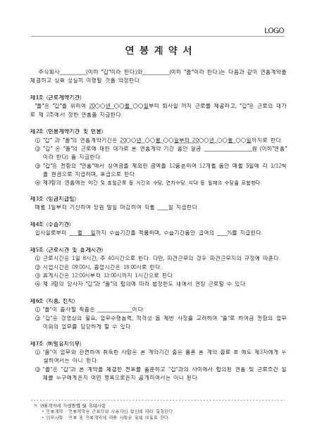 표준서식 ver 2.0은 대한민국 문서·서식 대표브랜드 비즈폼이 100여건의 중소기업 실무서식을 연구·분석하여 제작한 실무에 가장 적합한 표준 서식입니다. 샘플내용, 표준규정, 작성방법 등 문서 하나에 모든 내용이 포함되어 문서작성부터 행정처리까지 가능합니다. * 표준 연봉계약서(인사규정, 작성방법 포함)는 근로자와 사용자 간의 합의 따라 결정하고 작성하는 문서로, 회사의 규모와 성격에 맞게 수정하여 활용하실 수 있습니다. * 세부 항목 : 근로계약기간, 연봉계약기간 및 연봉, 임금지급일, 수습기간, 근로시간 및 휴게시간 등