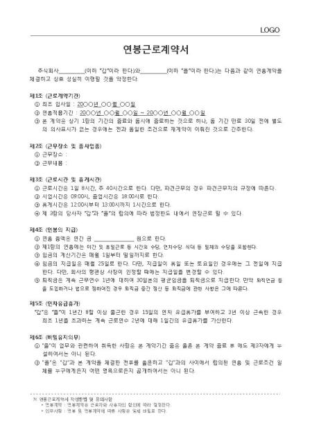 표준서식 ver 2.0은 대한민국 문서·서식 대표브랜드 비즈폼이 100여건의 중소기업 실무서식을 연구·분석하여 제작한 실무에 가장 적합한 표준 서식입니다. 샘플내용, 표준규정, 작성방법 등 문서 하나에 모든 내용이 포함되어 문서작성부터 행정처리까지 가능합니다. * 표준 연봉근로계약서(인사규정, 작성방법 포함)는 근로자와 사용자 간의 합의 따라 결정하고 작성하는 문서로, 연봉 및 연봉계약에 따른 사항은 일체 비밀로 하며, 회사의 규모와 성격에 맞게 수정하여 활용하실 수 있습니다. * 세부 항목 : 근로계약기간, 근무장소 및 종사업종, 근로시간 및 휴게시간, 연봉의 지급, 연차유급휴가 등