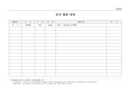 표준서식 ver 2.0은 대한민국 문서·서식 대표브랜드 비즈폼이 100여건의 중소기업 실무서식을 연구·분석하여 제작한 실무에 가장 적합한 표준 서식입니다. 샘플내용, 표준규정, 작성방법 등 문서 하나에 모든 내용이 포함되어 문서작성부터 행정처리까지 가능합니다. * 표준 인사발령대장(인사규정, 작성방법 포함)는 사원의 인사에 관한 변동사항을 기록하는 문서이며, 회사의 규모와 성격에 맞게 내용과 항목을 수정하여 활용하실 수 있습니다. * 세부 항목 : 발령일자, 소속, 직급, 성명, 발령사항 등