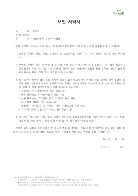 보안서약서(연봉,임금)입니다. 연봉 임금에 관련된 보안 서약서를 작성할 때 사용하는 문서입니다.