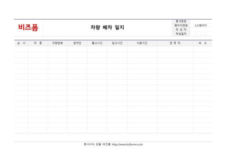 차량배차일지입니다. 차량배차관리에 사용되고 있습니다.