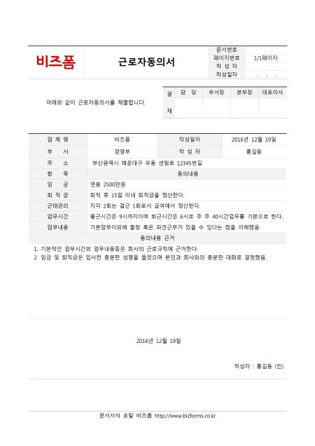 근로자동의서입니다. 업체명, 작성일자, 부서, 작성자, 주소, 항목, 동의내용, 동의내용근거 등의 항목으로 구성되어있습니다.