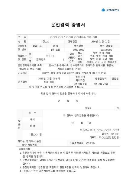 운전 경력증명서 입니다. 운전에 대하여 경력을 증명할 수 있을때 사용할 수 있는 문서이며 연도별 월별근무일수내역서 서식을 통하여 보다 상세하게 경력을 기입할 수 있는 문서입니다.