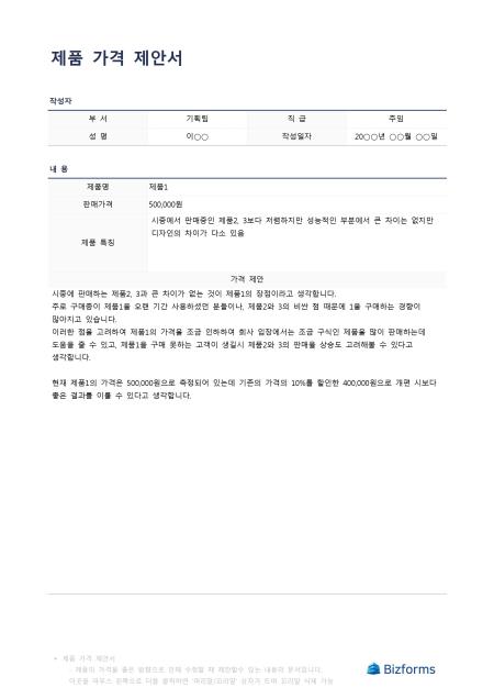 제품 가격 제안서 입니다. 제품의 수정방안과 가격을 제시할때 사용할 수 있습니다.