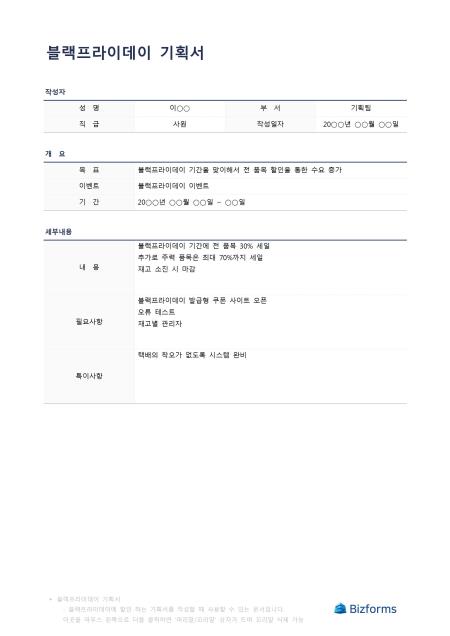 블랙프라이데이기획서입니다. 블랙프라이데이에 진행할 이벤트를 작성할 때 사용할 수 있는 문서입니다.