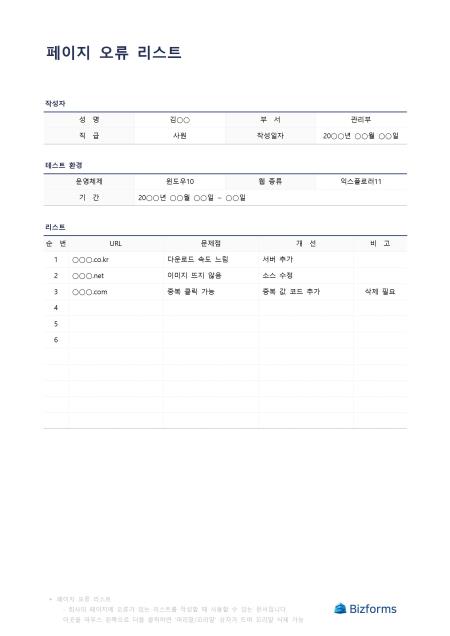 페이지오류리스트입니다. 오류난 페이지 리스트를 작성할 때 사용할 수 있는 문서입니다.