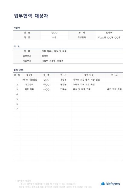 업무협력대상자입니다. 업무협력 대상자를 작성할 때 사용할 수 있는 문서입니다.