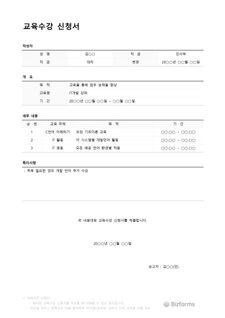 교육수강신청서입니다. 교육수강을 위해 신청서를 작성할 때 사용할 수 있는 문서입니다.