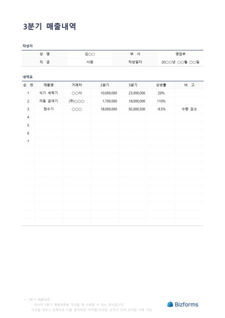 3분기매출내역입니다. 3분기에 매출 내역을 작성할 때 사용할 수 있는 문서입니다.