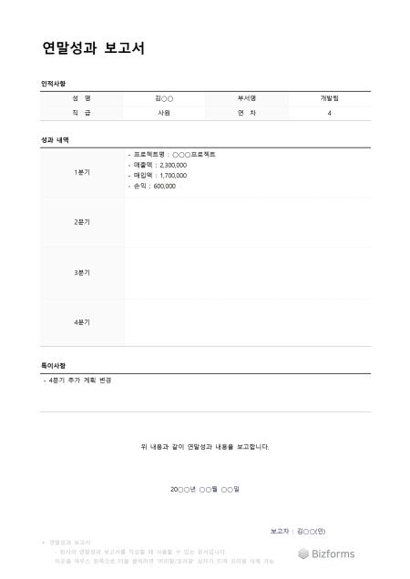 연말성과보고서입니다. 연말 성과에 대한 보고서를 작성할 때 사용할 수 있는 문서입니다.