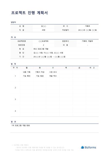 프로젝트진행계획서입니다. 프로젝트 진행 계획서를 작성할 때 사용할 수 있는 문서입니다.