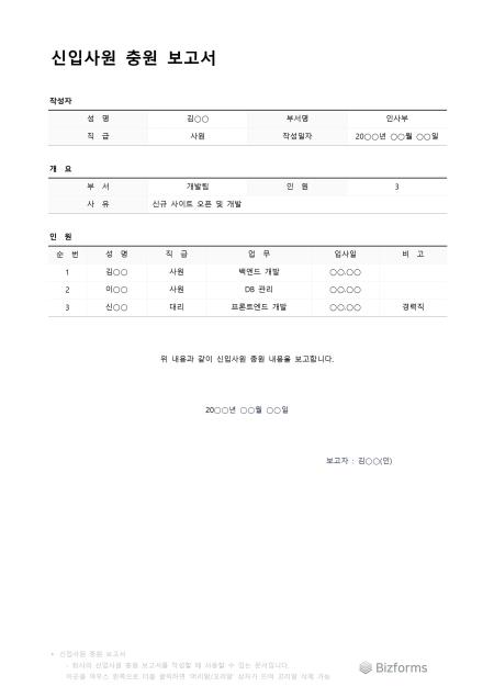 신입사원충원보고서입니다. 신입사원 충원 보고서를 작성할 때 사용할 수 있는 문서입니다.