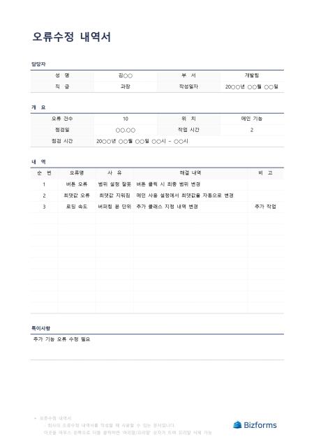오류수정내역서입니다. 오류수정 내역서를 작성할 때 사용할 수 있는 문서입니다.