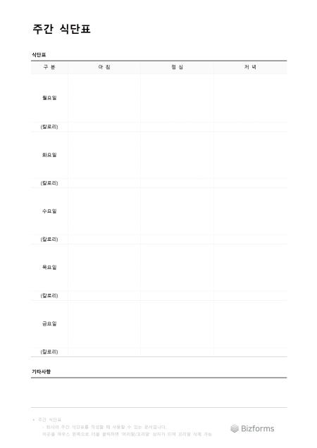 주간 식단표입니다. 회사의 주간 식단표를 작성할 때 사용할 수 있는 문서입니다.
