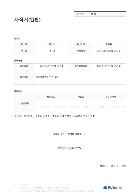 사직서(일반)입니다. 회사의 사직서(일반)를 작성할 때 사용할 수 있는 문서입니다.
