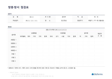 방충·방서 점검표입니다. 회사의 방충·방서 점검표를 작성할 때 사용할 수 있는 문서입니다.