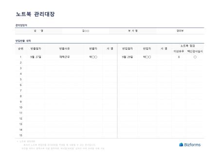 노트북 관리대장입니다. 노트북 관리대장을 작성할 때 사용할 수 있는 문서입니다.