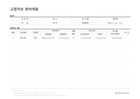 고정자산 관리대장입니다. 고정자산 관리대장을 작성할 때 사용할 수 있는 문서입니다.