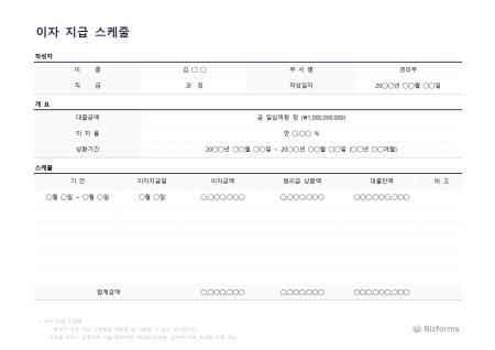 이자 지급 스케줄입니다. 이자 지급 스케줄을 작성할 때 사용할 수 있는 문서입니다.