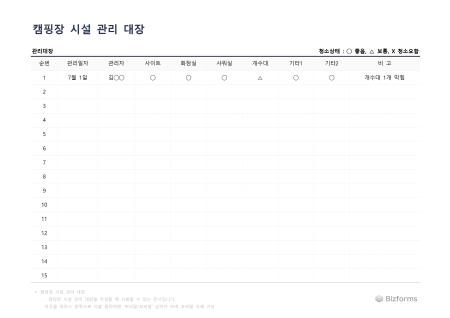 캠핑장 시설 관리 대장입니다. 캠핑장 시설 관리 대장을 작성할 때 사용할 수 있는 문서입니다.