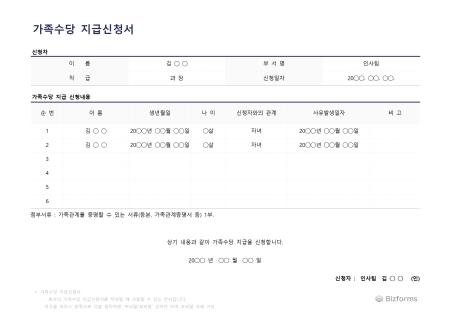 가족수당 지급 신청서입니다. 가족수당 지급 신청서를 작성할 때 사용할 수 있는 문서입니다.