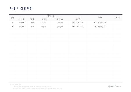 사내 비상연락망입니다. 사내 비상연락망을 작성할 때 사용할 수 있는 문서입니다.
