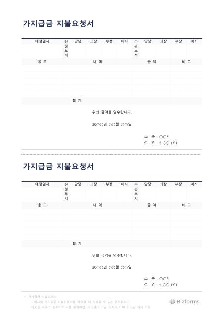 가지급금 지불요청서입니다. 가지급금 지불요청서를 작성할 때 사용할 수 있는 문서입니다.