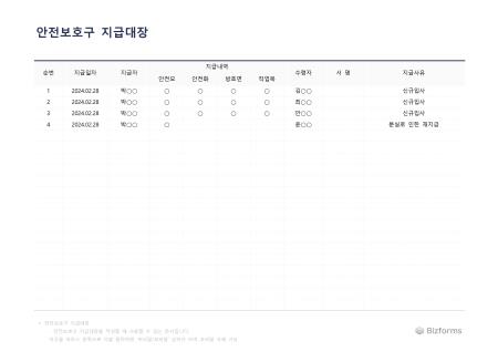 표준 안전보호구 지급대장입니다. 안전보호구 지급대장을 작성할 때 사용할 수 있는 문서입니다.