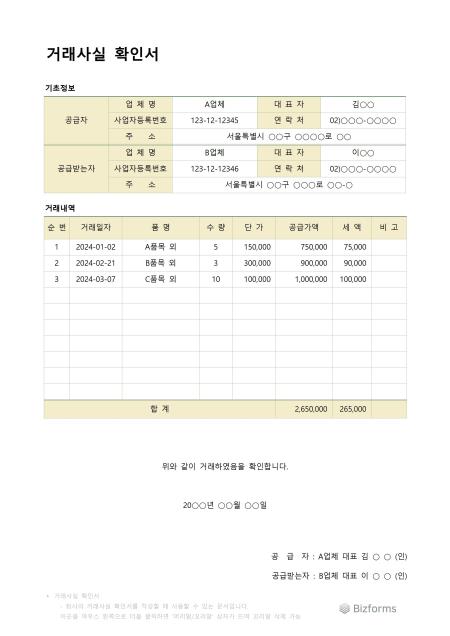 표준 거래사실 확인서입니다. 거래사실 확인서를 작성할 때 사용할 수 있는 문서입니다.