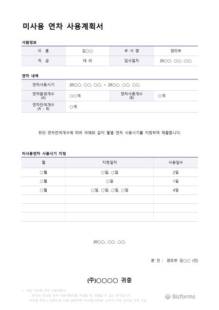 • 사용하지 않은 연차 휴가를 사용할 수 있도록 돕는 문서