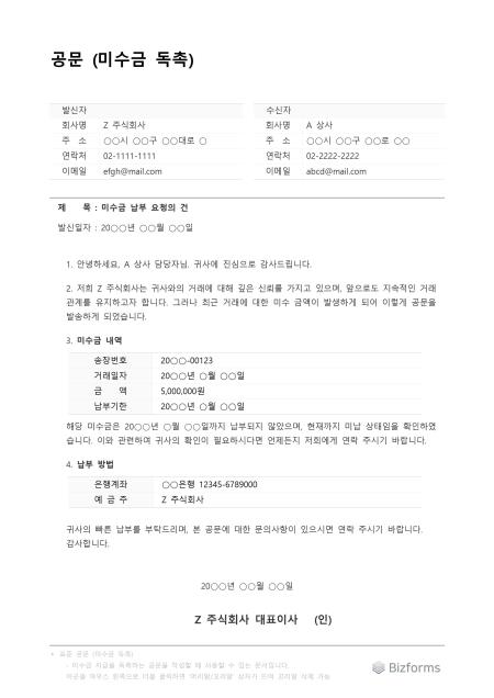 명확한 지급 기한과 지급 방법을 제시하여 수신자가 구체적인 행동을 취할 수 있도록 안내합니다.