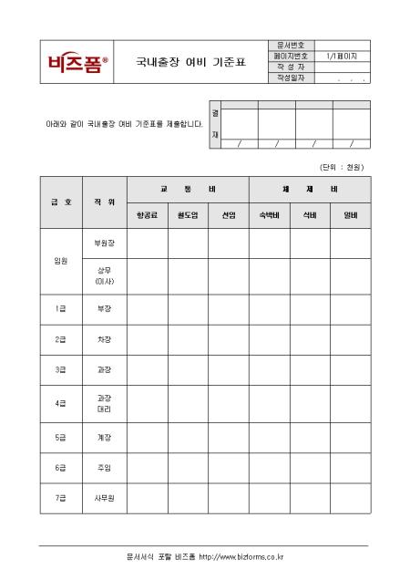 국내 출장 시 여비 기준을 기록해놓은 국내출장 여비 기준표입니다. 급호, 직위, 교통비, 체제비 등의 항목으로 구성되어있으며 국내 출장을 할 때에는 국내출장 여비 기준에 의해 여비가 지급됩니다.