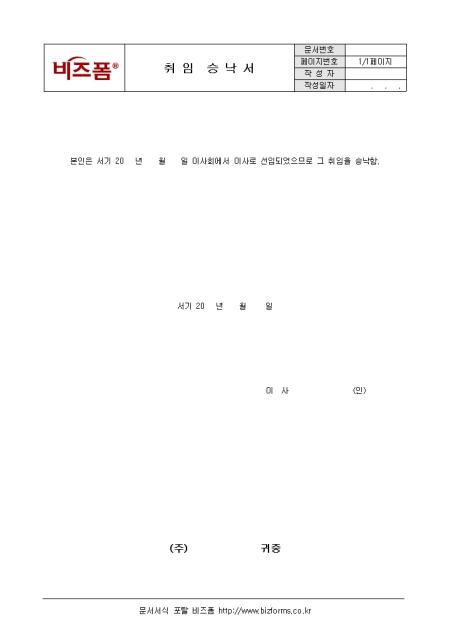 이사회에서 이사로 선임되고 그 취임을 승낙할 때 사용하는 취임 승낙서입니다.