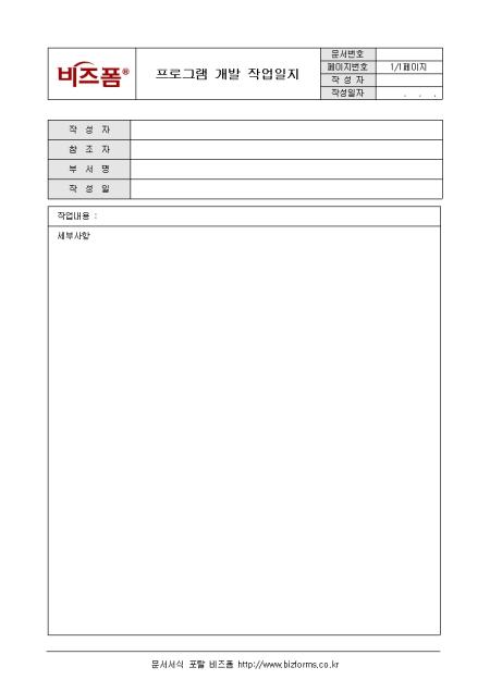 하루동안의 프로그램 개발에 관한 사항을 기록/ 관리하는 프로그램 개발 작업일지입니다. 작업내용, 세부사항 항목에 대해 상세히 기록합니다.