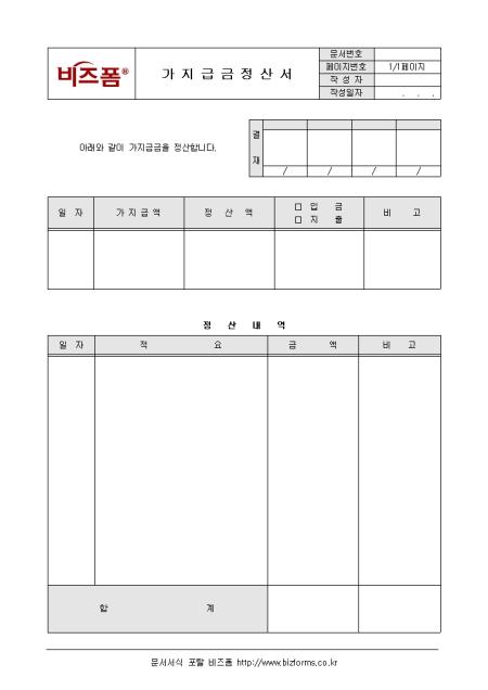 선지급한 금액의 사용 내역을 정산하는 회계 서식