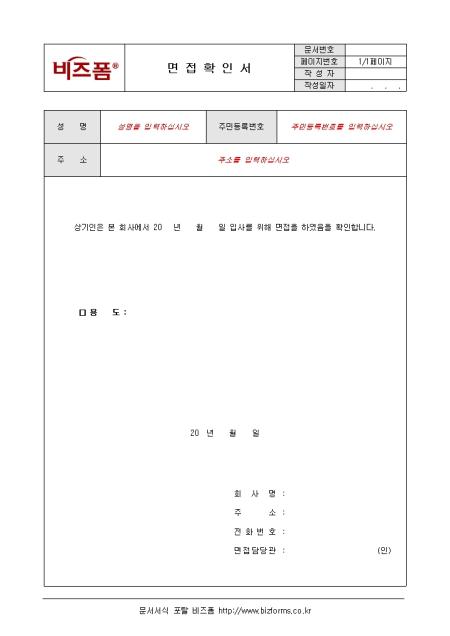 인사부에서 사용하는 서식으로 입사를 위해 면접을 본 입사자들에게 면접을 보았음을 확인할 때 사용할 수 있는 면접확인서입니다.