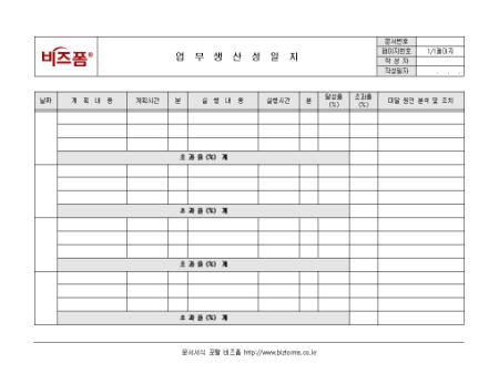 업무 생산성에 관한 현황을 기록/ 관리할 수 있는 업무생산성일지입니다. 날짜, 계획내용, 계획시간, 실행내용 등의 항목으로 구성되어있습니다.