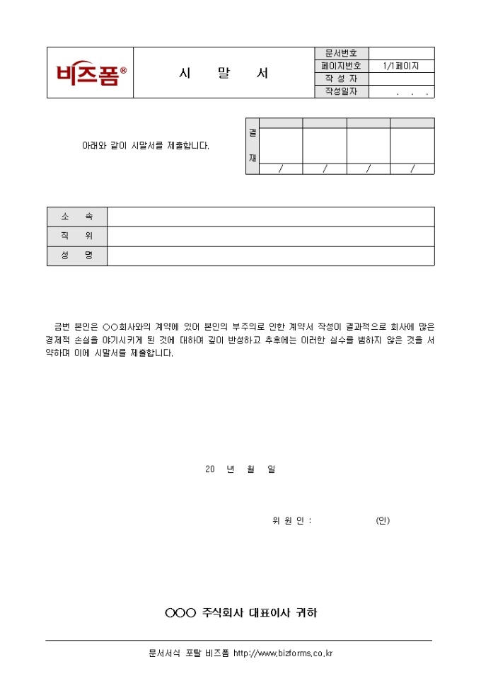 부주의로 인해 회사에 경제적인 손실을 입히게 되어 작성한 시말서입니다.