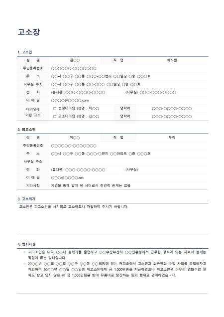 표준 고소장 양식을 다운로드하여 준비