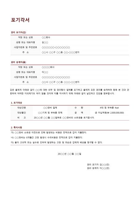 표준 서식을 제공하여 개인 상황에 최적화된 포기각서를 쉽게 작성할 수 있습니다.