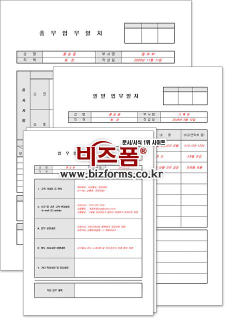 직종별로 해당 업무에 따라 사용할 수 있는 업무일지 모아놓은 직종별 표준 업무일지 모음입니다. ※ 직종별 업무일지 표준 경리 업무일지, 표준 고객관리 업무일지, 표준 부서별 업무일지, 표준 비서 업무일지, 표준 생산 업무일지, 표준 수습사원 업무일지, 표준 영업 업무일지, 표준 자재 업무일지, 표준 총무 업무일지, 표준 팀 업무일지, 표준 학원 업무일지, 표준 MD 업무일지