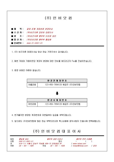 전달사항을 팩스로 전송할때 사용되는 표준 팩스 서신 입니다. 제목, 수신자, 내용, 발신자 정보 항목으로 구성되어 있습니다.