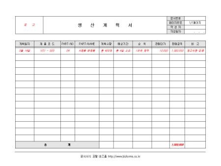 계획일자, 제품코드, PART-NO, PART-NAME, EO-NO, 계획수량, 순위, 판매단가, 판매금액을 기록 할 수 있는 생산계획표입니다.
