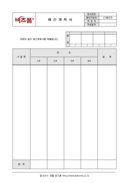 예산을 계획할 때 사용되는 서식이다. 구성요소는 사업년도, 각 분기별항목등으로 구성되어 있으며 예산은 예산관리책임자가 각 부문별 예산계획서를 종합 심의조정하여 예산을 편성한 후 이사회의 승인을 얻음으로써 성립한다.